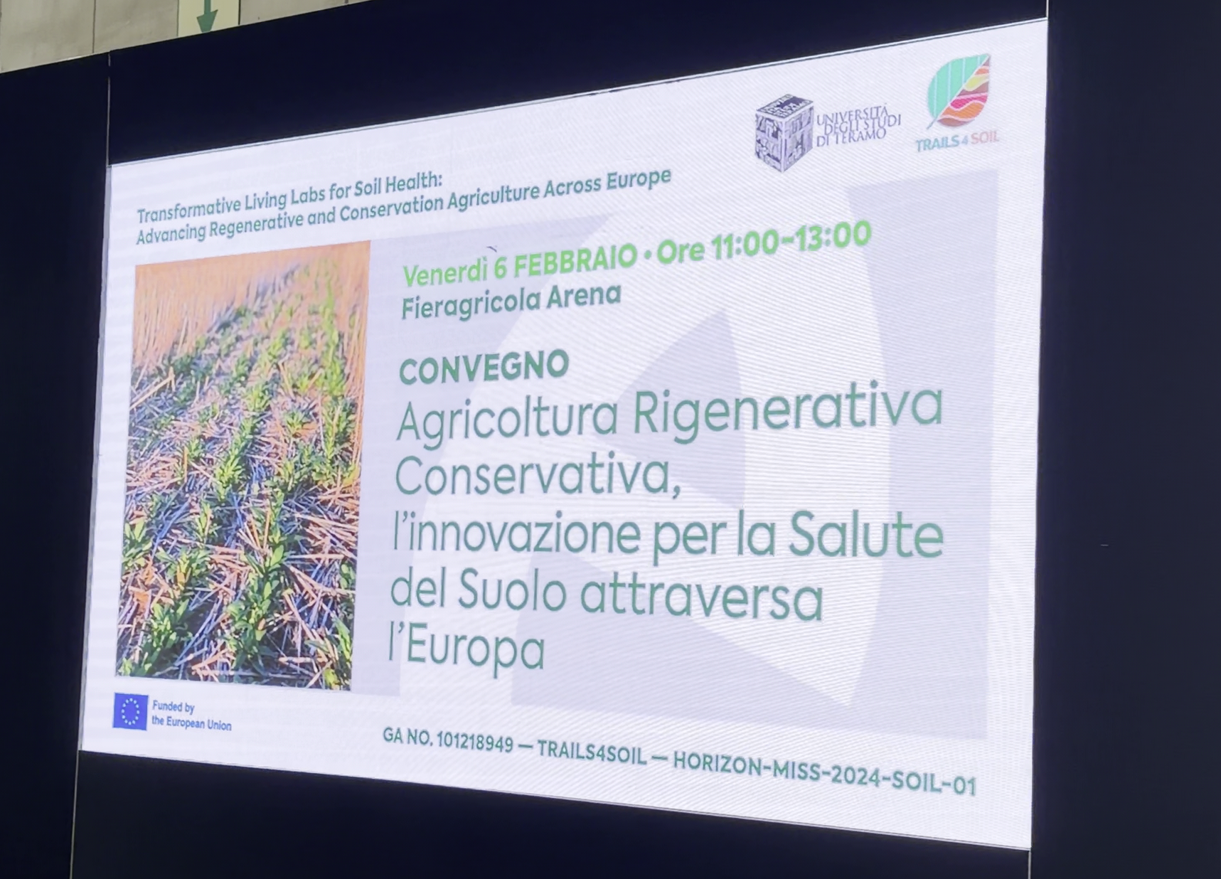 La missione Ue “Un accordo sul suolo per l’Europa” affronta una delle sfide più importanti dell’agricoltura europea: invertire i processi di degradazione del suolo per una graduale transizione verso sistemi produttivi rigenerativi, resilienti e climaticamente adattabili. In questo ambito, Trails4Soil è un progetto di ricerca e di innovazione quinquennale, finanziato dall'Ue a sostegno dell'attuazione di questa missione, che è stato presentato a Fieragricola 2026 a inizio febbraio 2026 con un convegno organizzato da Edagricole in collaborazione con l’Università degli Studi di Teramo.