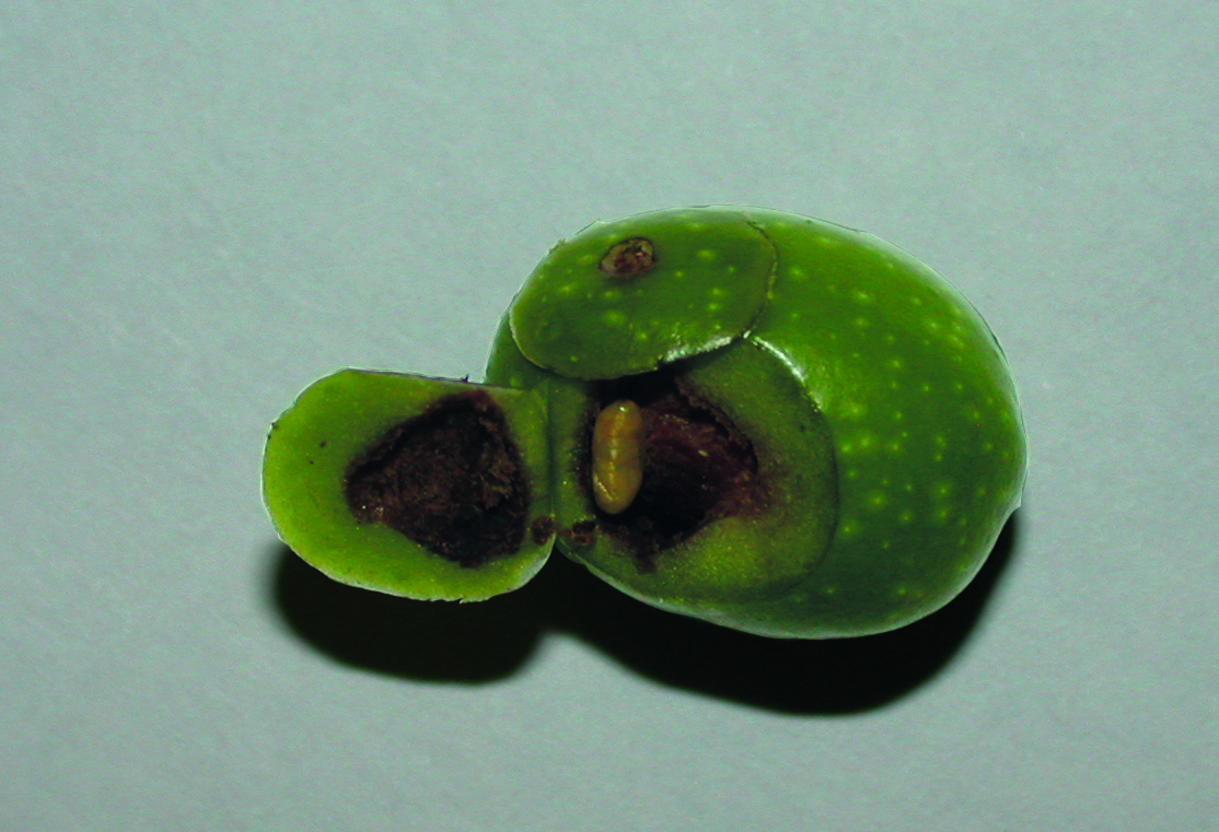 Fra fine settembre e inizio ottobre le larve si impupano nell’oliva. Gli interventi chimici in questa fase sono tardivi e praticamente inutili