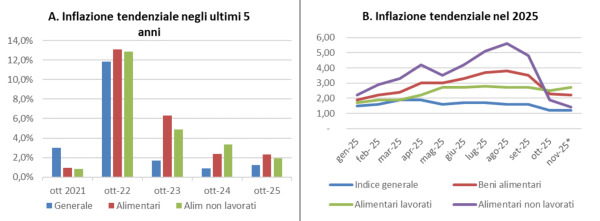 Nel mese di ottobre 2025, in particolare, l’inflazione tendenziale riferita all’intero paniere di spesa si è attestata su un valore dell’1,2%, a fronte di un valore tendenziale di crescita dei prezzi alimentari pari al 2,3%. Inoltre, l'Autorità garante della concorrenza e del mercato evidenzia forte squilibrio di potere contrattuale degli agricoltori rispetto alle grandi catene della Gdo, imputando tale squilibrio alla mancata aggregazione dei fornitori.
