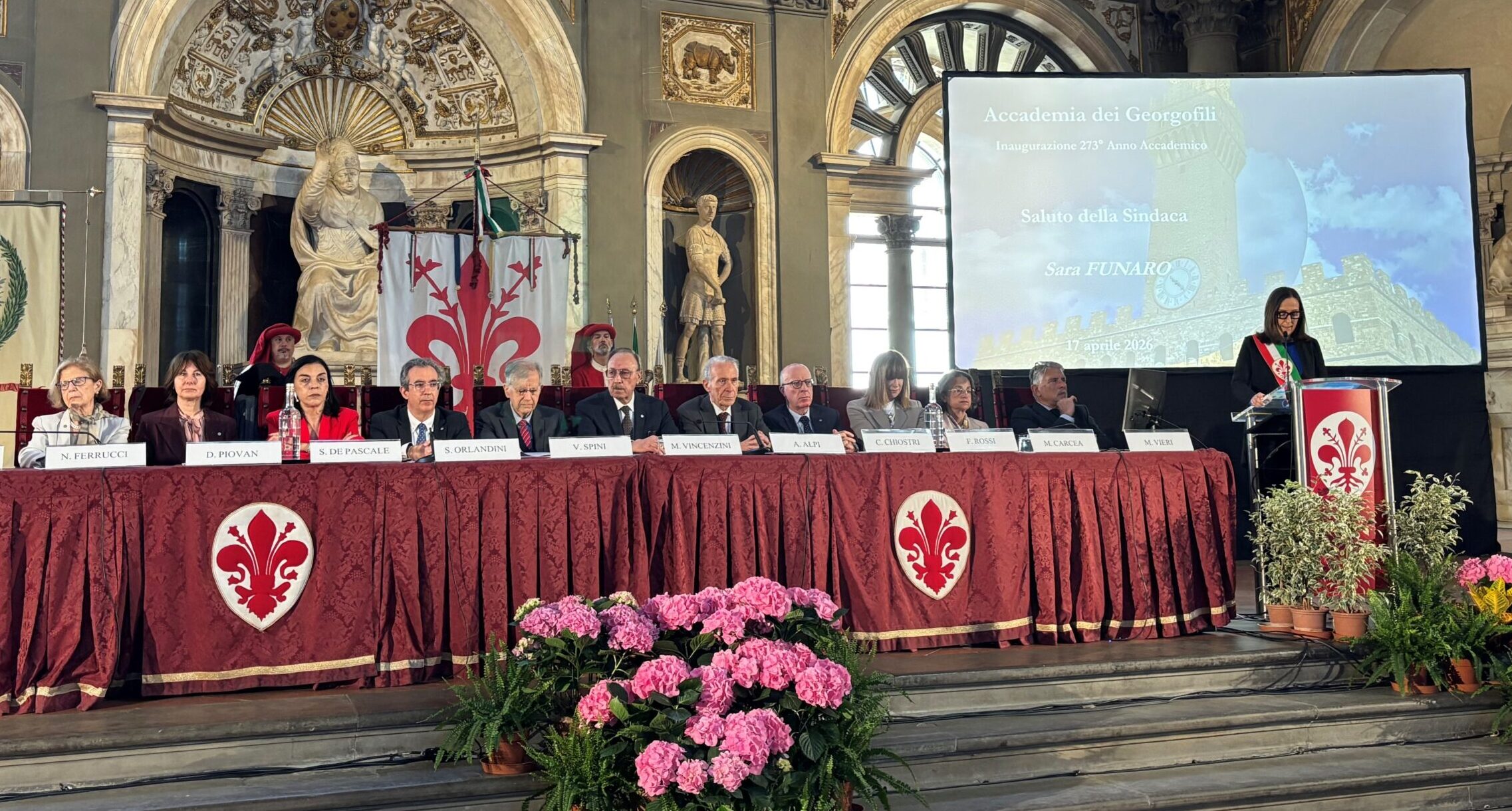 Inaugurato nel Salone dei Cinquecento, in Palazzo Vecchio a Firenze il 273esimo Anno accademico dei Georgofili. Dopo il saluto della sindaca di Firenze Sara Funaro, il presidente Massimo Vincenzini ha svolto la sua relazione, esprimendo «profonda preoccupazione per i tempi che stiamo vivendo, in cui sembra essersi smarrita quella ragione che, invece e per fortuna, ancora illumina la via del progresso scientifico e che siamo soliti praticare a favore dell'agricoltura e della società civile». Vincenzini ha poi sottolineato che «il futuro vede le incertezze associarsi concretamente con una instabilità geopolitica, commerciale e climatica senza precedenti in più ambiti, non solo per ciò che riguarda il mondo agricolo».