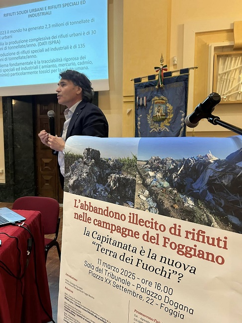 «Dal 2006 al 2024 le inchieste sul traffico di rifiuti che hanno coinvolto la provincia di Foggia hanno portato al sequestro di 618.170 tonnellate di rifiuti, pari a un’autocolonna di 24.726 tir in coda per 336 chilometri, la distanza tra Foggia e Latina! Nello stesso periodo, allargando il campo all’intera Puglia (Foggia compresa), le inchieste sul traffico illecito di rifiuti sono state 57 e hanno portato al sequestro di 6.529.849 tonnellate di rifiuti, con 269 ordinanze di custodia cautelare, 754 persone denunciate e 122 aziende coinvolte. Dobbiamo chiedere a gran voce al governo che questo territorio venga perimetrato come sito d’interesse nazionale, l’Italia deve aprire gli occhi su ciò che sta succedendo in provincia di Foggia».