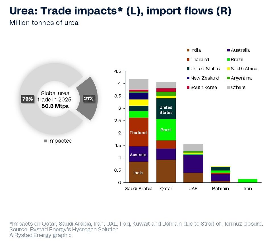 Bezzi ricorda che il problema della chiusura dello stretto di Hormuz non ha tanto un impatto diretto sui fertilizzanti importati dall'Italia, quanto sugli scambi riguardanti soprattutto India e Medio Oriente (vedi grafico). La questione, lo ricordiamo, è legata quindi quasi esclusivamente all'impatto sui prezzi energetici.
