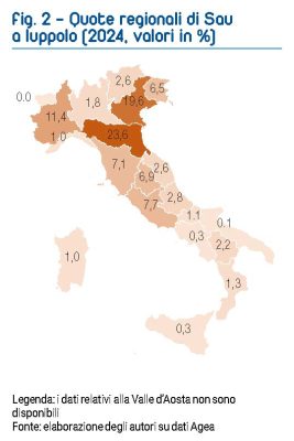 La coltivazione è concentrata principalmente nelle regioni centrali e settentrionali, in particolare in Emilia-Romagna, Veneto e Piemonte, che nel 2023 rappresentano insieme il 54,4% della superficie nazionale coltivata a luppolo (fig. 2). Queste zone sono caratterizzate da condizioni pedoclimatiche generalmente favorevoli alla coltivazione della pianta, anche se gli eventi climatici estemporanei molto spesso mettono a dura prova le produzioni. Inoltre, sono proprio queste le regioni che maggiormente hanno puntato sulla produzione di birra artigianale, annoverando alcuni fra i produttori più strutturati del settore, in grado, quindi, anche di investire nella produzione e trasformazione delle materie prime da brassare nei propri stabilimenti. Al contrario, le regioni meridionali devono affrontare sfide maggiori, legate principalmente alle condizioni climatiche locali. Tuttavia, i cambiamenti climatici hanno incoraggiato strategie di diversificazione, con gli agricoltori che sperimentano sempre più spesso il luppolo come coltura complementare. Studi recenti indicano che mostra una promettente adattabilità alle condizioni agroclimatiche italiane (Marceddu et al., 2022, 2024), producendo luppolo di qualità soddisfacente in alcune regioni, tra cui Toscana e Lazio (Carbone et al., 2021). Inoltre, non bisogna dimenticare i limiti di tipo strutturale, come quelli connessi alla produttività degli impianti, e gli aspetti organizzativi-manageriali legati, spesso, alla mancanza di conoscenze tecniche per un’opportuna scelta varietale e management colturale professionale.