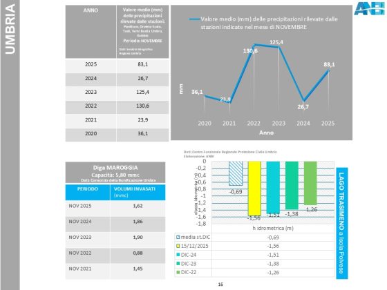 «Il 2025 va a concludersi con le stesse criticità, con cui era iniziato, cui vanno ad aggiungersi nuovi, preoccupanti segnali proprio da quei territori, che fino a pochi mesi fa avevano goduto di un’abbondanza d’acqua, che perdurava da quasi due anni e mezzo – conclude Francesco Vincenzi, Presidente di Anbi e appena confermato vicepresidente di Irrigants d’Europe – L’imprevedibilità nelle disponibilità idriche è la palese dimostrazione di quanto sia impossibile una burocratica applicazione di normative comunitarie, come il Deflusso Ecologico che, seppur condivisibili negli obbiettivi, rischiano di avere conseguenze penalizzanti, non considerando le peculiarità di aree, i cui ecosistemi sono ulteriormente diversificati dalla crisi climatica».