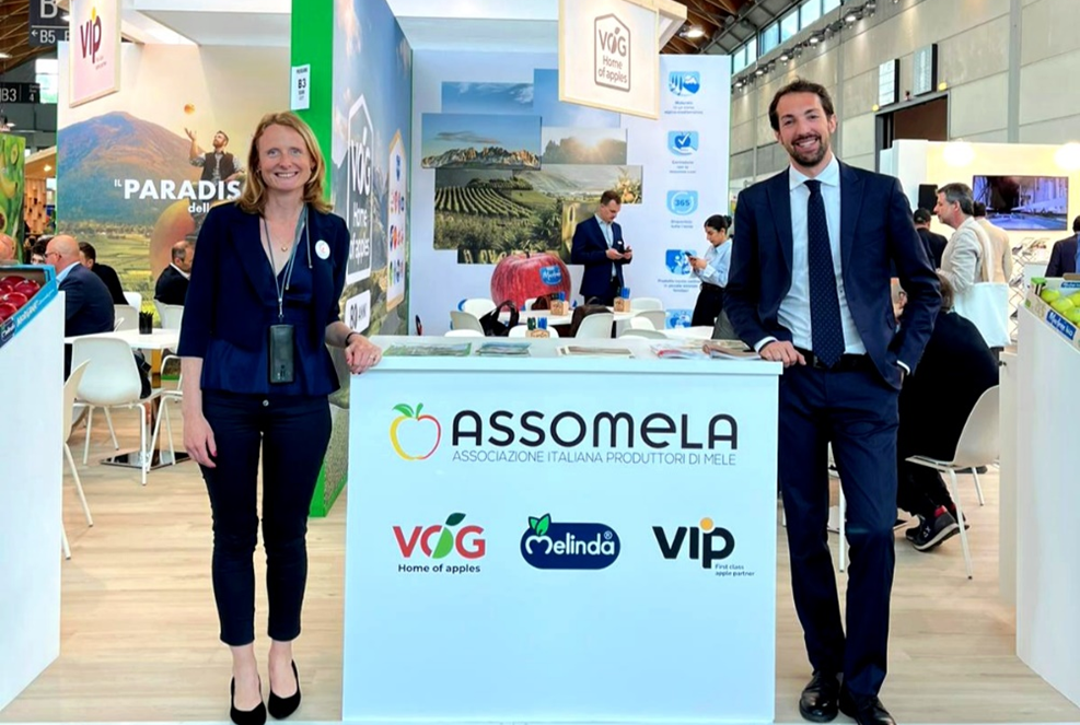 Il team di Assomela a Macfrut: Anna Eriksson (sostenibilità e comunicazione), Giovanni Missanelli (direttore)