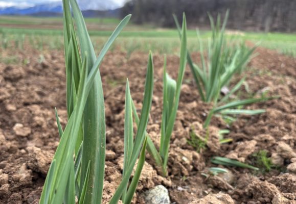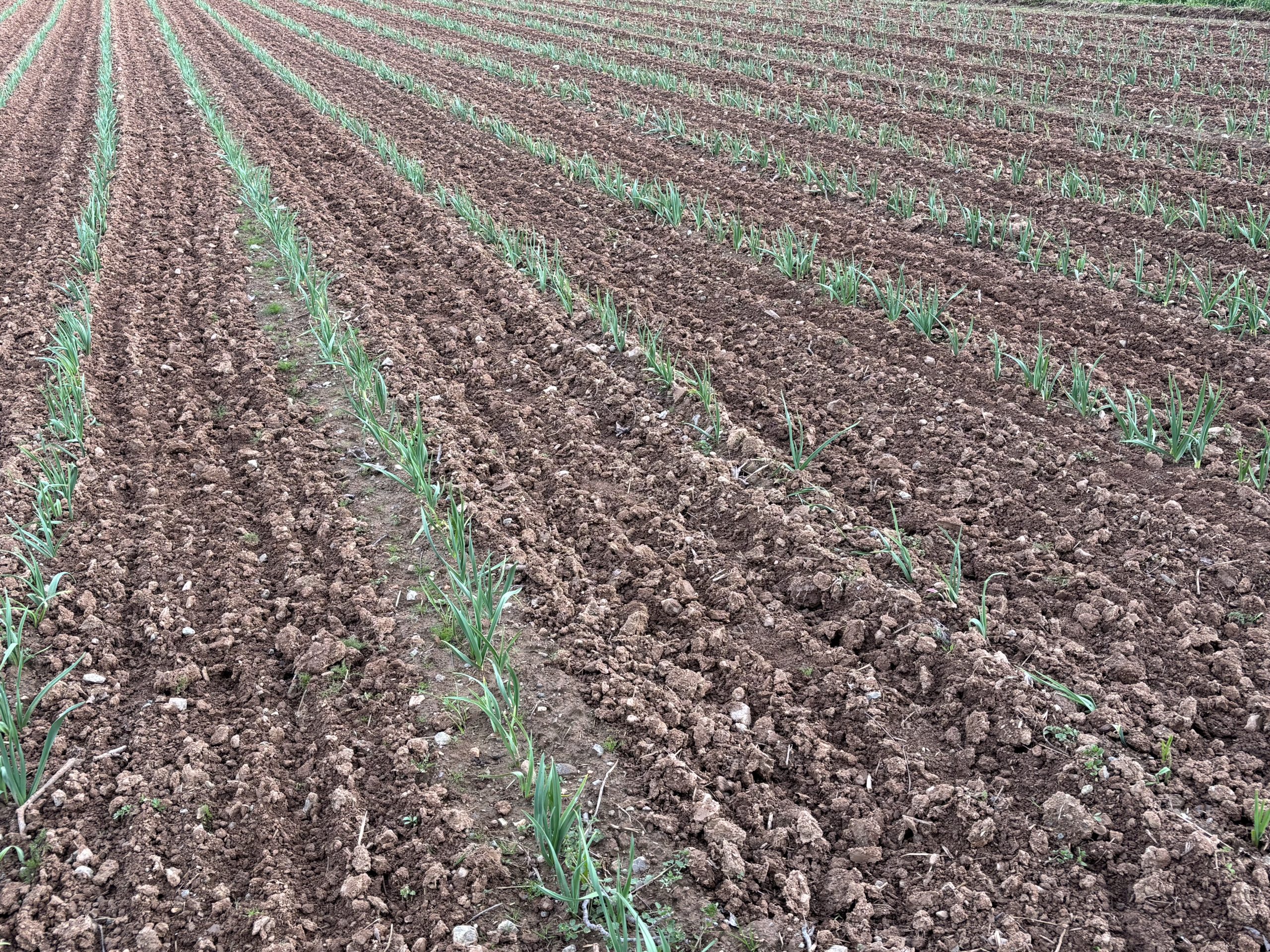 L’unico trattamento eseguito, con prodotti derivati dall’olio di Neem, nel mese di aprile, «è per contrastare i fitofagi». Il principale è la moschina dell’aglio, un dittero che depone le uova alla base della pianta: le larve bucano i bulbilli e causano rosure. Letame bovino e solfato di potassio sono gli unici fertilizzanti ammessi, «l’aglio non è una coltura particolarmente esigente». Le infestanti sono la principale sfida per i produttori: «Agli interventi di contenimento con erpici vengono affiancate sarchiature manuali», conclude Giraudo.